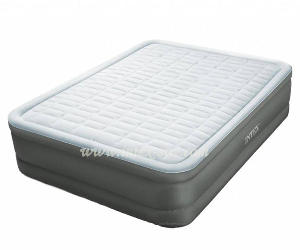 تخت خواب دو نفره، ساخته شده از جنس بدنه پی وی سی با روکش مخملی ضد تعریق، بسیار نرم و و راحت، جنس دور از جیر، بسیار مقاوم، دارای الیاف پلیستر مشبک، دارای سطح فلت، با ارتفاع سه لایه، ساخته شده با تکنولوژی DURA BEAM، دور تادور خود لبه کوتاه دارد و برای جلوگیری از کثیفی میتوان روی آن ملحفه کشید، این تخت دو نفره تا وزن 273 کیلوگرم را تحمل میکند، لوازم جانبی از جمله کیف حمل و برچسب تعمیر رایگان دارد، یک پمپ برقی متصل به تخت دارد که عمل پر و خالی کردن تخت را در 4 دقیقه انجام میدهد و دارای 18 ماه ضمانت نمایندگی اینتکس میباشد. این تخت در سایز یک نفره نیز تولید میشود.