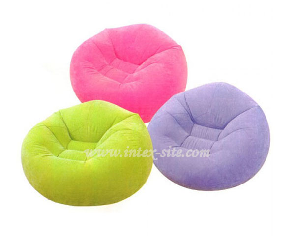 بدلیل افزایش ثبات و استواری مبل بادی از چند دریچه جداگانه باد شده که دریچه ها به یکدیگر راه نداشته و باد را بهتر در بین خود تقسیم میکنند. مبل بادی توپی از جنس پی وی سی با روکش تمام مخمل در رنگ های شاد و زیبای سبز، صورتی و بنفش تولید میشود که این خود یک مزیت بوده و انتخاب های مختلفی را به فرد میدهد تا با توجه به نیاز و سلیقه خود خرید انجام دهد. سطح نشیمنگاه مبل توپی دارای بافت هایی به سطح زیرین بوده که باعث گود شدن این ناحیه میشود، دریچه ورودی هوای این مبل بادی از نوع پستونکی کوچک میباشد، برای باد زدن آن کافیست ابتدا پمپ باد مورد نظر خود را از دسته بندی پمپ های باد انتخاب کرده، سپس نازل پمپ را تا انتهای سوپاپ ورودی هوا فشار داد تا هوا به داخل را پیدا کند. این محصول با انواع پمپ های باد شرکت اینتکس قابل باد زدن میباشد. لازم به ذکر است مبل بادی جیر رنگی یک دریچه بادی بزرگ تشتک دارد که توسط آن میتوان باد کلی محصول را تخلیه کرد.