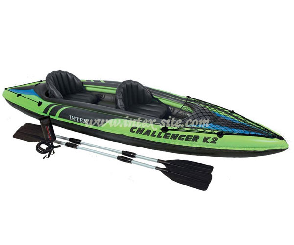 از نظر ظاهری قایق های کایاک دارای طولی کشیده بوده، رنگ این محصول سبز-مشکی میباشد، قایق بادی و ورزشی کایاک قابلیت نصب موتور را ندارند و نیروی محرکه آن توسط یک جفت پاروی کایاکی 5 تکه دو طرفه انجام میگیرد. دو عدد کوسن با پشتی جهت نشستن افراد دارد. یک توری در قسمت جلویی قایق تعبیه شده که برای نگهداری لوازم قایق رانان استفاده میشود. جنس بدنه قایق بادی از پی وی سی چند لایه با کیفیت است، از دریچه های بادی مجزا باد میگردد و این امر موجب حفظ تعادل و ثبات قایق بادی در آب میشود. دریچه های کف و صندلی این قایق دو نفره بادی از نوع پستونکی کوچک و دریچه باد بدنه آن از نوع پیچی بزرگ است. یک زائده هدایتی در زیر قایق کار شده که به بهبود هدایت آن، هنگام قایق رانی کمک میکند. این محصول با همین مشخصات در سایز یک نفره نیز تولید میگردد.