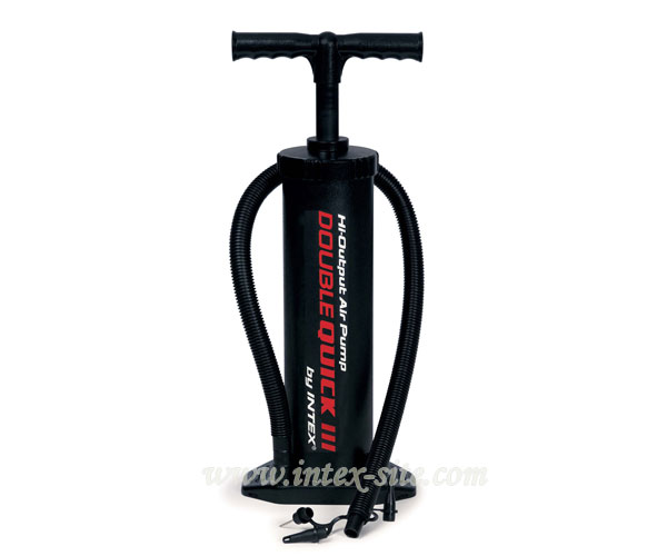 پمپ باد دستی با ارتفاع 48 سانتی متر از جنس پلاستیک، دارای رابط شلنگی با چهار نازل مختلف، جهت باد زدن لوازم بادی با دریچه های باد کوچک و بزرگ، دارای عملکرد دو طرفه، یعنی پر و خالی کردن باد محصول، با توان باد زدن عالی، پر قدرت ترین پمپ باد دستی شرکت اینتکس، با توان باد زدن توپ های ورزشی، دارای یک دسته بزرگ، بصورت دستی از بالا به پایین محصول را باد میزند.