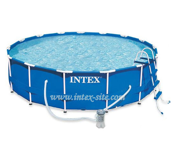 استخر پیش ساخته دایره فریمی اینتکس، به قطر 457 و عمق 122 سانتیمتر، وزنی معادل 70 کیلوگرم دارد، حجم آب آن 16805 لیتر میباشد، دور تا دور آن پایه های فلزی آلمینیومی قرار دارد، مناسب برای استفاده بزرگسالان و کودکان، در منزل، جنس بدنه از پی وی سی الیافدار، دارای طراحی داخلی کاشی کوچک، از بیرون آبی یکدست که لوگوی اینتکس روی آن به چشم میخورد، مقاوم در برابر فشار آب، استخر فریمی اینتکس بسیار زیباست و یک پمپ تصفیه فیلتر کاغذی پر قدرت با توان تصفیه 3785 لیتر در ساعت دارد که قویترین پمپ از این نوع میباشد، دارای زیرانداز، روکش، نردبان، رابط تخلیه و آبیاری، برچسب تعمیرات و دی وی دی آموزشی نصب دارد. به علاوه جنس آن هم بسیار خوب است و یکی از بهترین و به صرفه ترین استخر های پیش ساخته اینتکس می باشد.